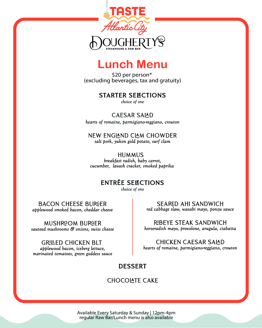 Whether you’re a local or visiting Atlantic City, Taste Atlantic City is the perfect opportunity to experience the bold flavors and elevated dining Dougherty’s is known for. Join us and savor the celebration all month long!